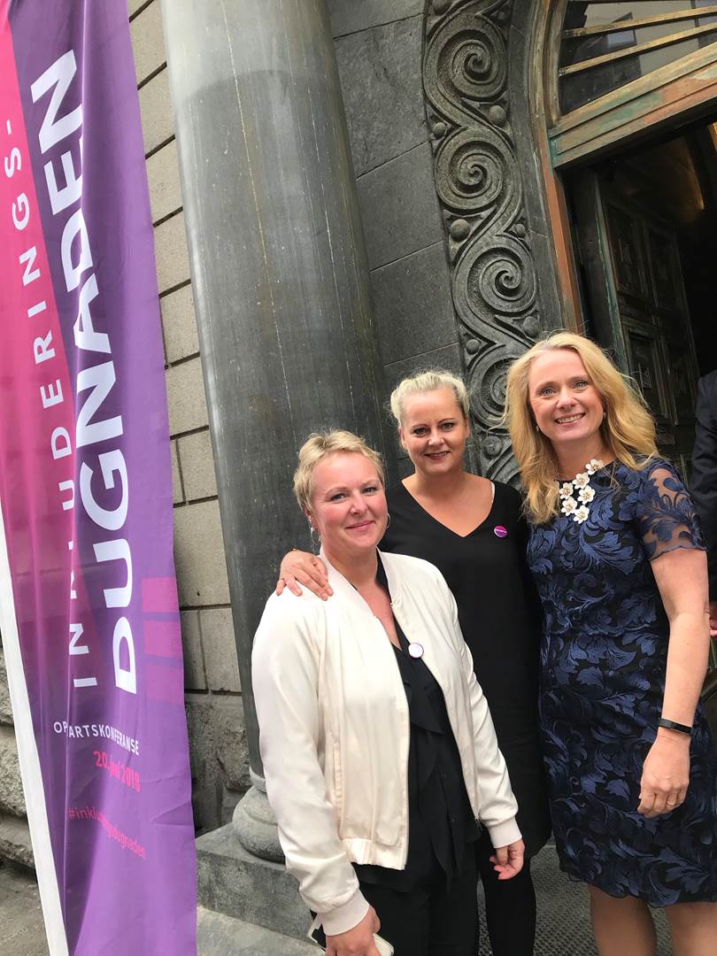 Til stede på Inkluderingskonferansen: F.v.: Hovedtillitsvalgt i Bakehuset Ingunn Ekremsæter, statsminister Erna Solberg og HR-sjef Hilde Melfald.