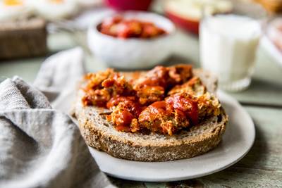 - Skjær gode skiver brød.