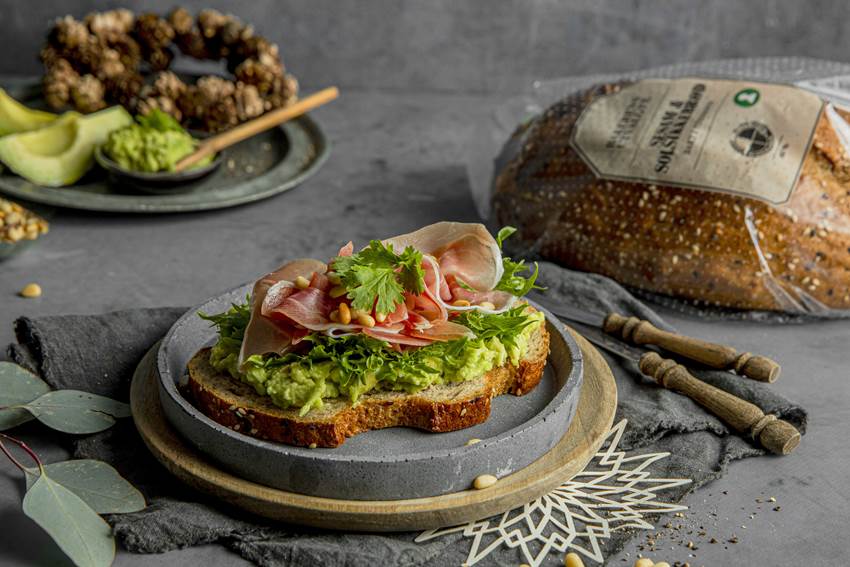 Avokado og parmaskinke på Sesam-& Solsikkebrød