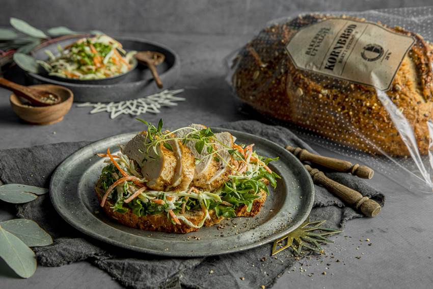 Kornbrød med coleslaw og kalkun