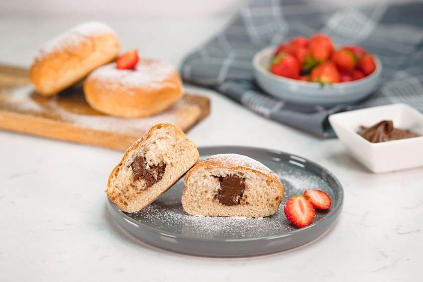 - Ha nugatti i sprøyteposen og fyll hullet i bollen til det er fullt.
