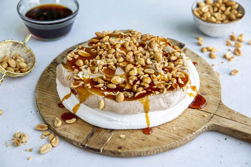 Er du glad i kombinasjonen søtt og salt vil du like denne pavlovaen.