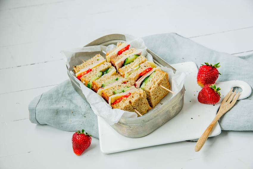 - Del brødskivene i fire og tre pinner gjennom. Vips så har du en smakfull matpakke og brød i kø!