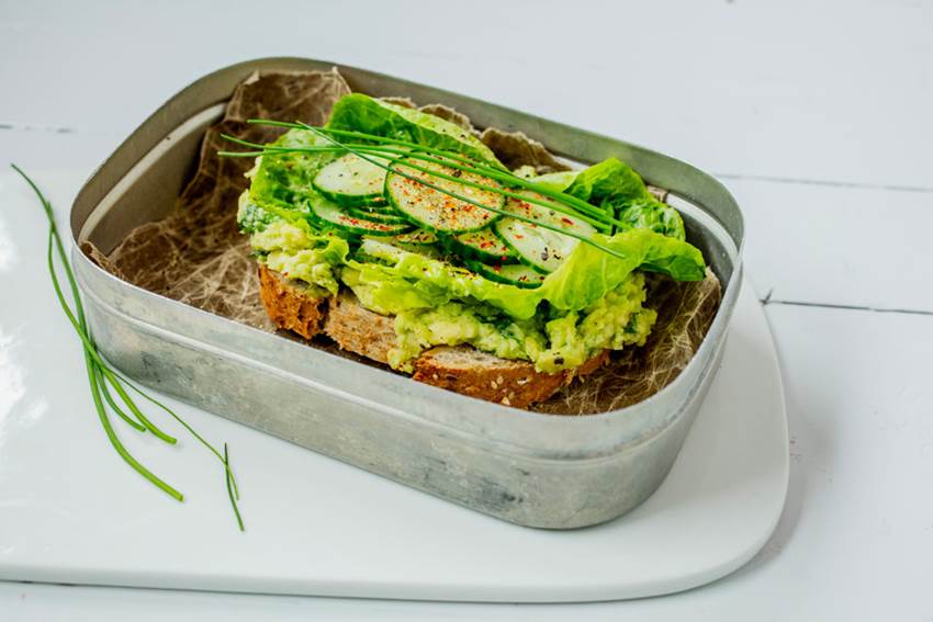 - Smør avokado på en skive av Vårt Beste Grovbrød, legg på blader med hjertesalat og skiver med agurk.