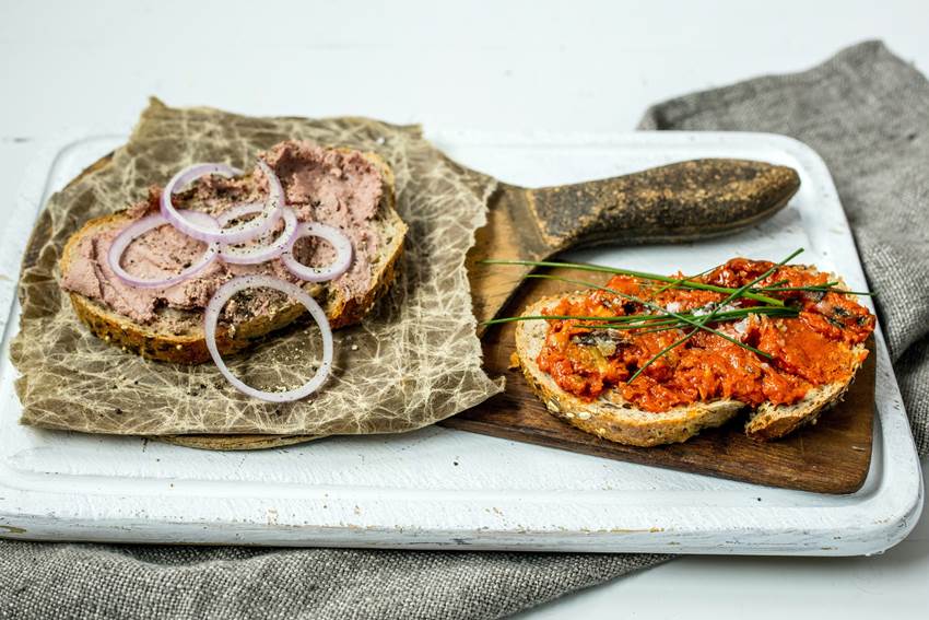 - Smør leverpostei på en skive av Våre Beste Grovbrød, legg løkringer på toppen og krydre med pepper.