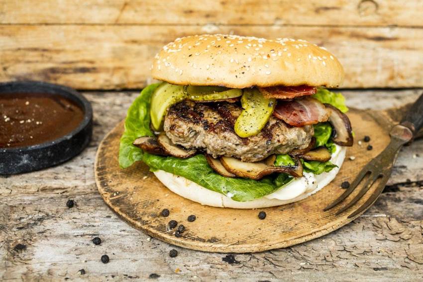 - Topp med burger og sylteagurk - og en dryss pepper.