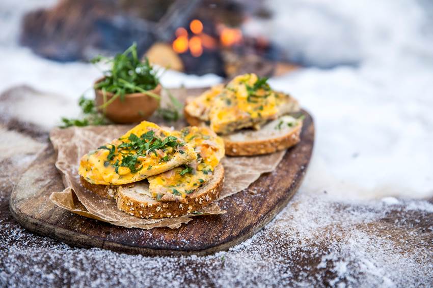 - Legg deretter omeletten på en skive grovt brød (vi har brukt havrebrød).